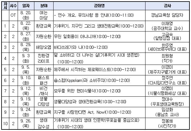 경남교육청 학부모 그린멘토 양성 과정에 관해 안내드립니다. 본 과정은 기후행동을 주도하고 실천하는 학부모 역할을 제고하고 친환경 실천을 확산하기 위한 실시간 원격 연수로 운영됩니다. 1. 과정명: 2024. 경남교육청 학부모 그린멘토 양성 과정 2. 대상: 도내 학부모 250명 내외(자녀의 소속 학교를 통해 신청서 제출, 개별 신청 불가) 3. 내용: 생태전환교육을 위한 학부모 교육 20시간(실시간 원격 연수(유튜브 접속)) 4. 신청 기간 및 방법: 2024.7.19.(금)까지, 신청서와 개인 정보 동의서 학생 편으로 제출 5. 연수 기간: 2024. 8. 22.(목)~9. 26.(목) 10:00~12:00 (기간 중 화,목, 총 10회차, 사전 연수 제외, 1회 2시간) 6. 사전 연수: 2024. 8. 20.(화) 10:00~11:00 (접속 방법 연수(별도 안내),필참, 연수 시간에는 불포함) 7. 이수증 발급: 원격연수 총 20시간 중 80%(16시간) 이상 이수 시 발급 8. 차시별 주제