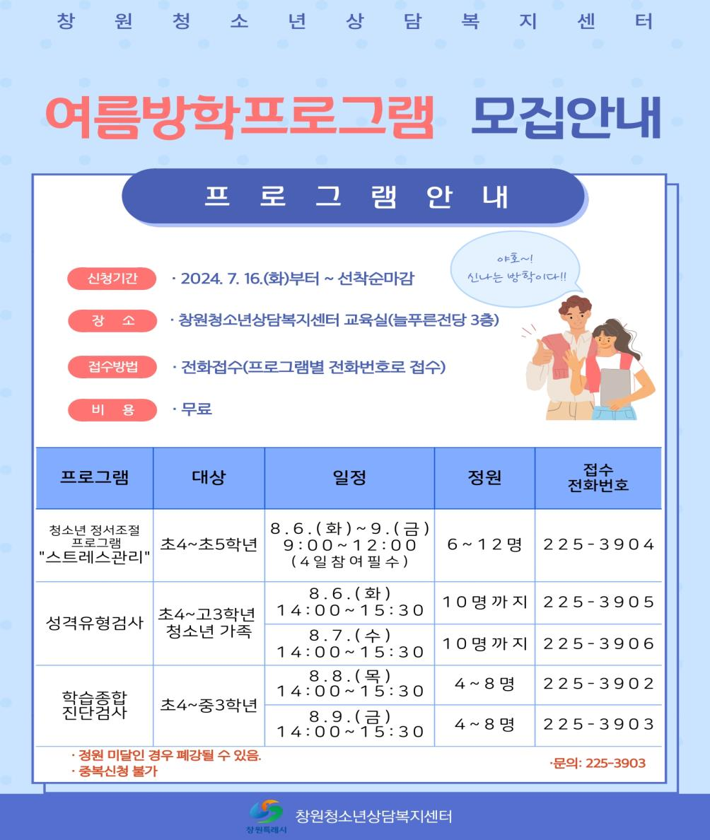 2024. 창원청소년상담복지센터 여름방학 프로그램 안내