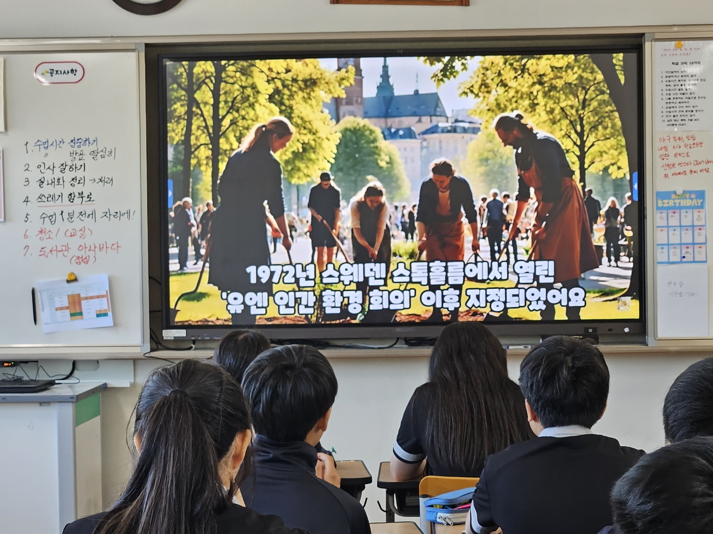2025년 6월 5일 아침 조례시간, 환경교육주간 계기교육을 실시하였습니다.